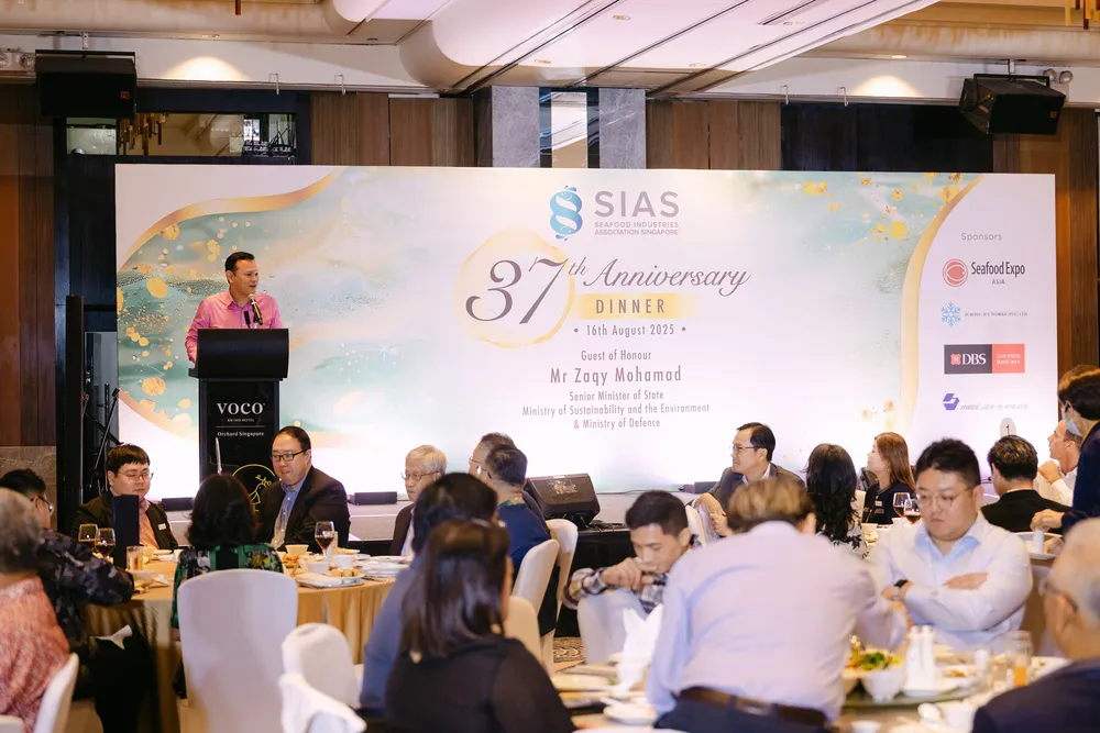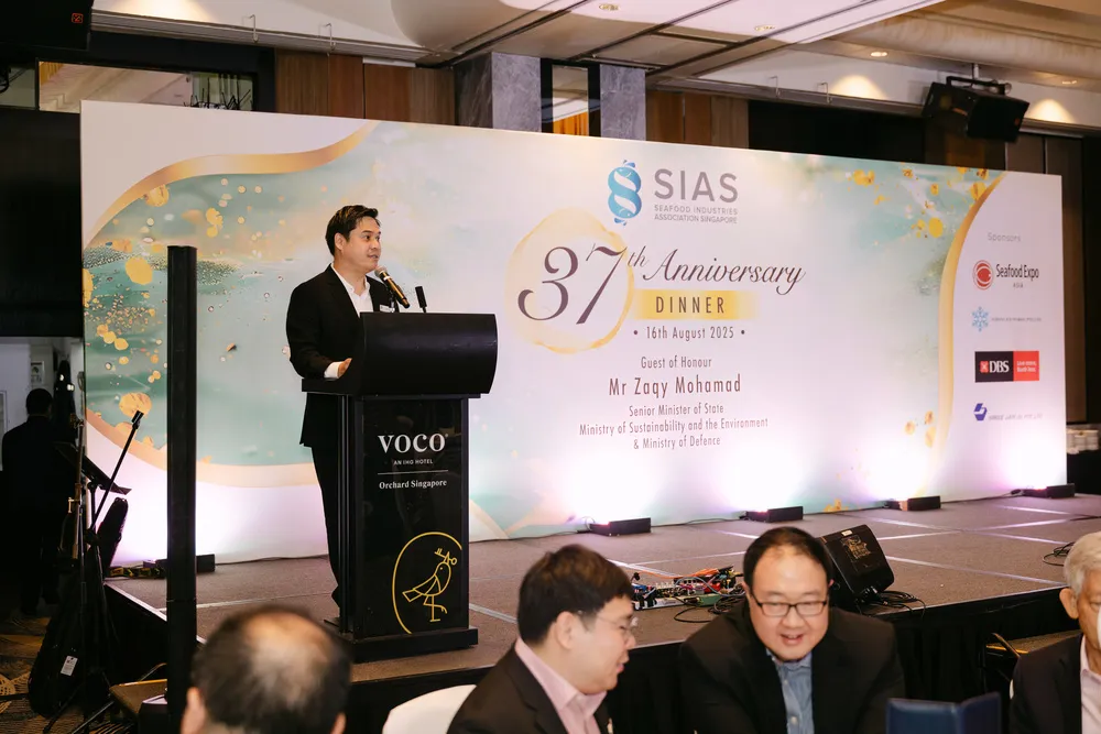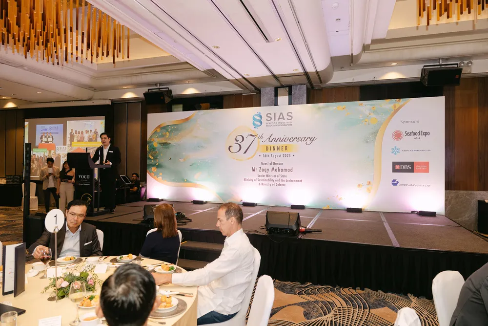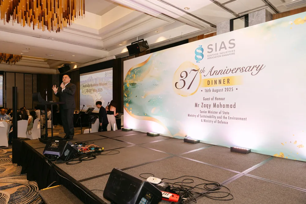 The 37th SIAS Anniversary Dinner was held on 16 August 2025 at Voco Orchard Singapore, graced by our Guest of Honour, Senior Minister of State Mr. Zaqy Mohamad (MSE & MINDEF). The event welcomed over 260 attendees, including SIAS members, partners, representatives from government agencies, and distinguished guests from embassies and industry associations. The evening celebrated SIAS’s milestones and reinforced our commitment to strengthening industry collaboration, driving sustainability in the seafood sector, and expanding global trade opportunities.